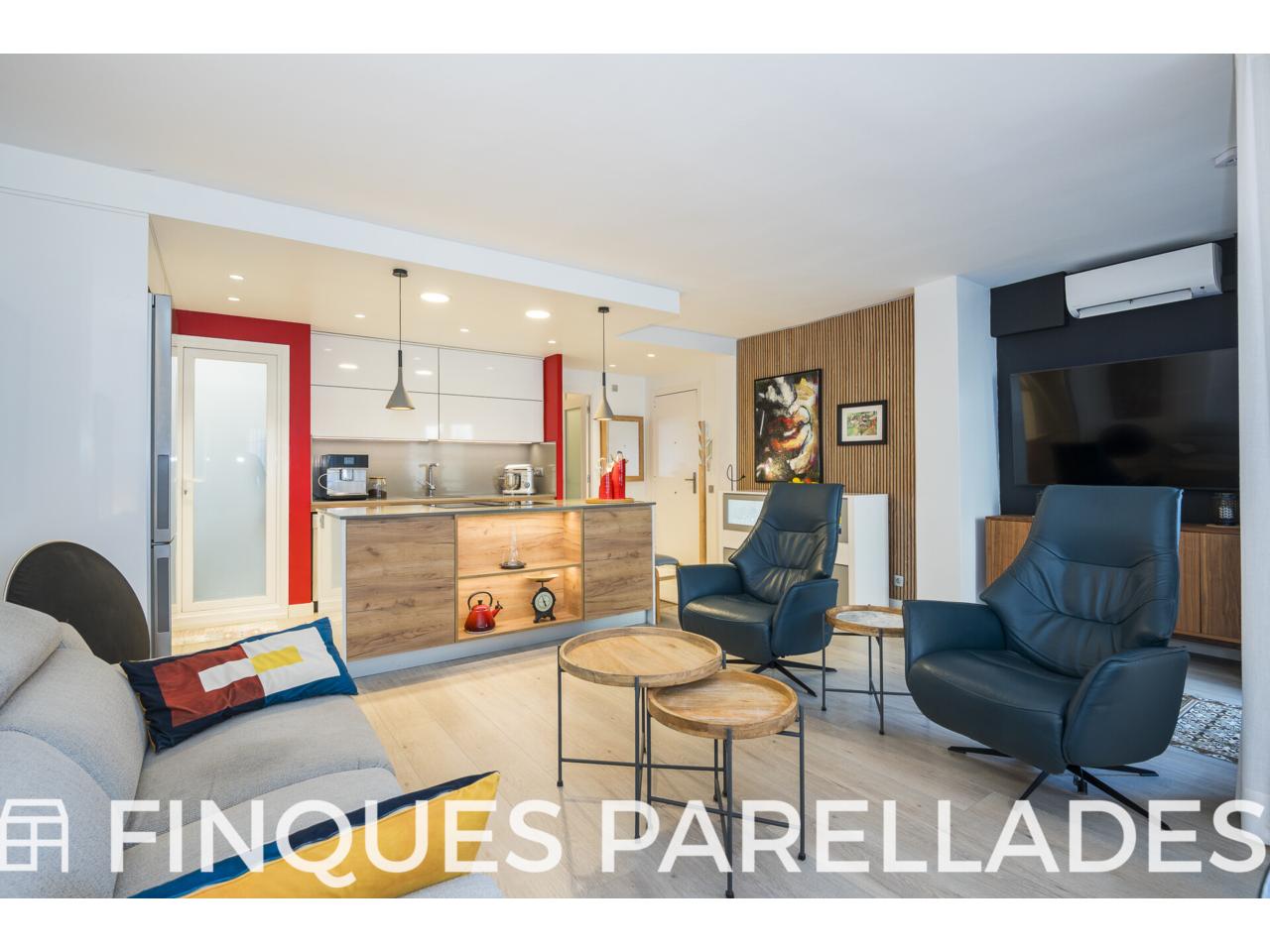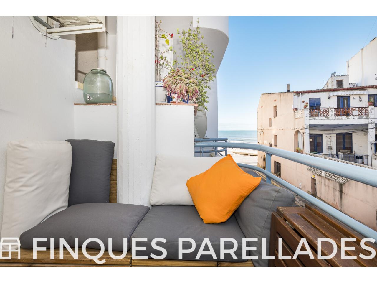 Vivienda totalmente reformada en la zona de San Sebastián de Sitges, con vistas al mar, piscina, ascensor, plaza de aparcamiento y trastero.